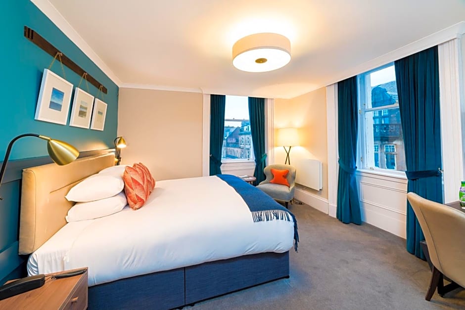 The en-suite has a high-pressure rain shower, bathrobes and toiletries. These rooms have views of the town center. There is a king-size bed with down duvets and pillows and Egyptian cotton bedding.